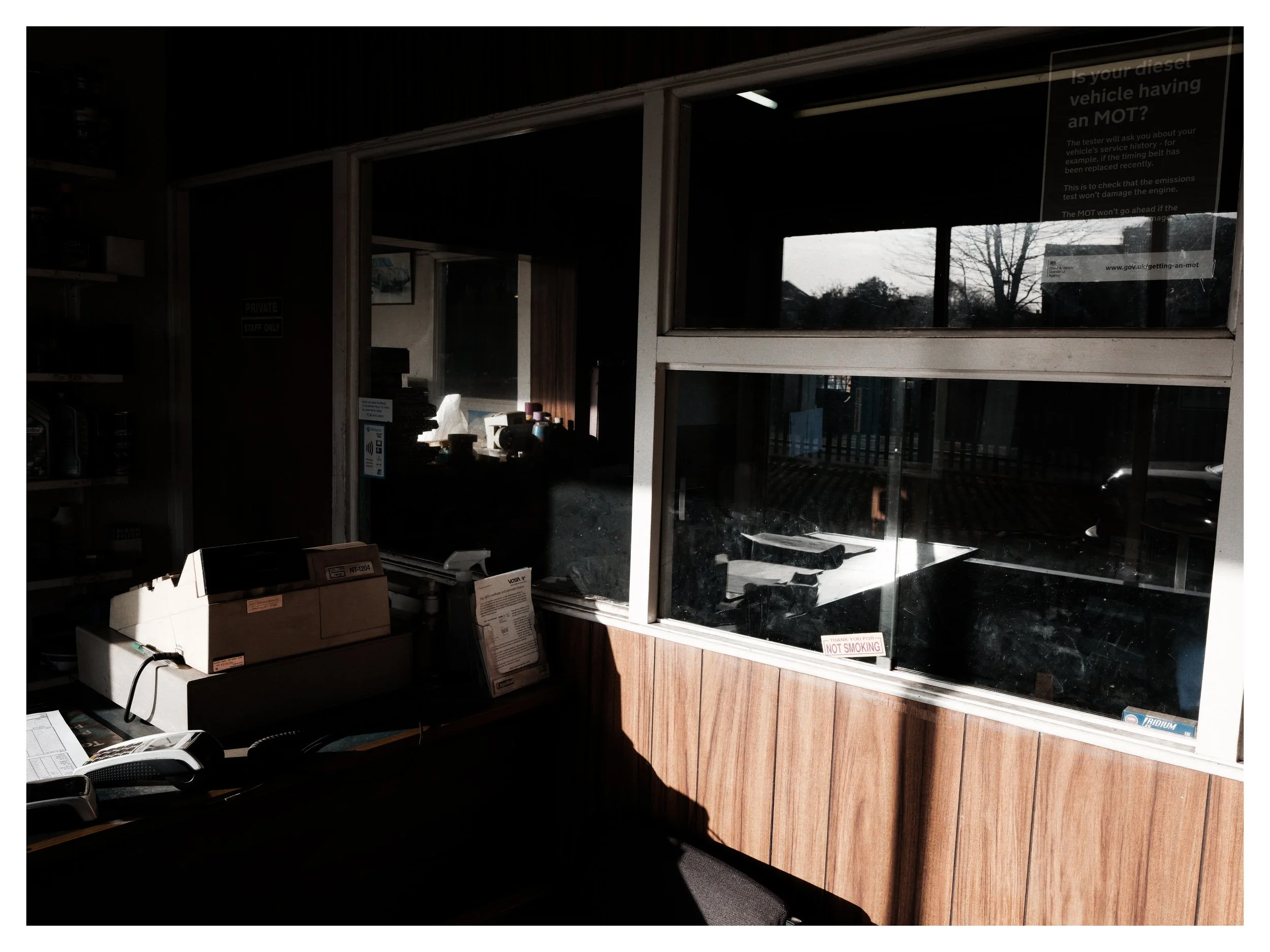 This image connects to my wider interest in recognising places that feel familiar but don’t offer a clear story or explanation. The glass acts as both a mirror and a window, showing the outside while partly revealing the inside, but never fully doing either. This double role shows how mirrors and windows can distort just as much as they reveal, all depending on where you stand and how you look.