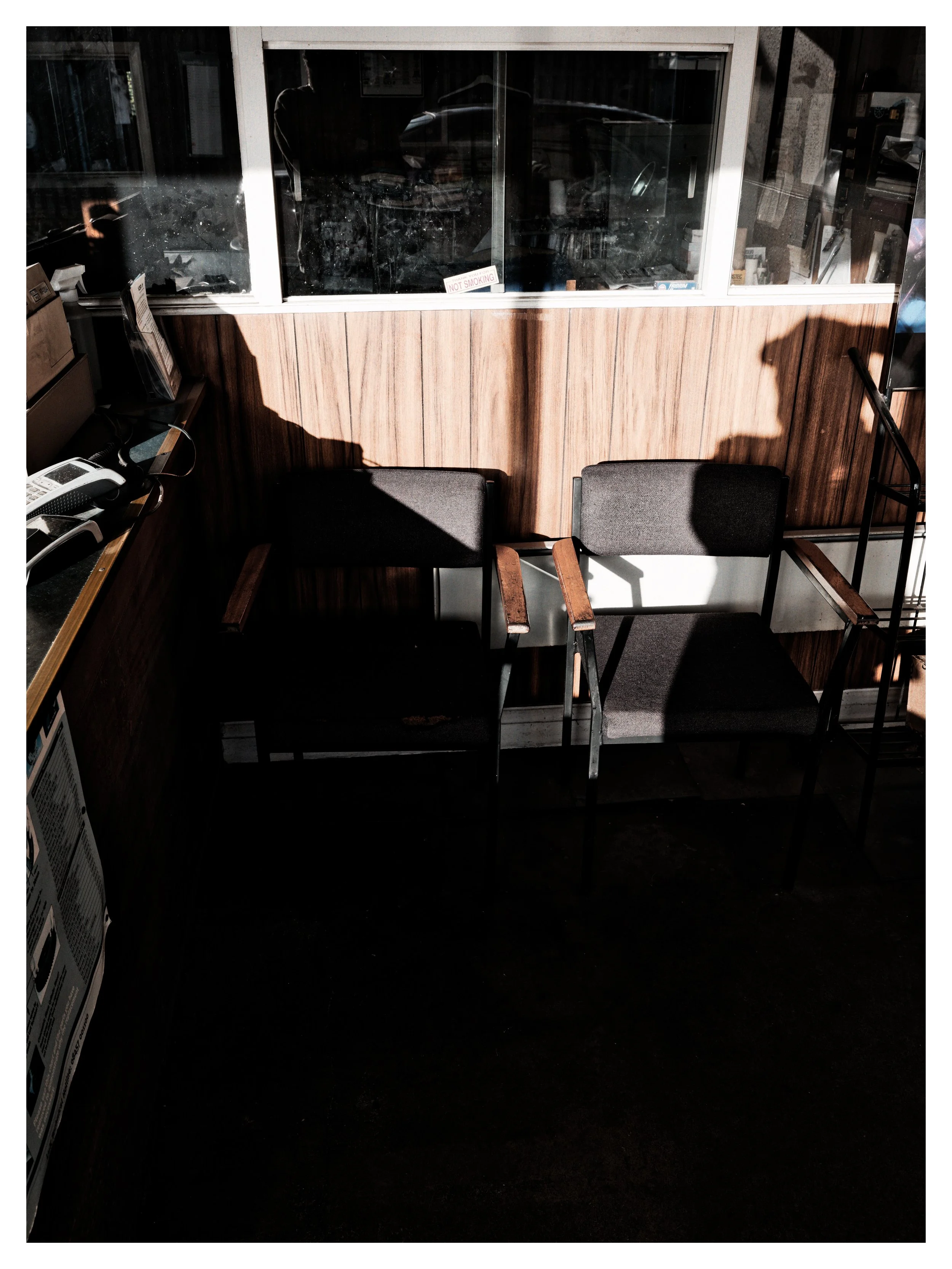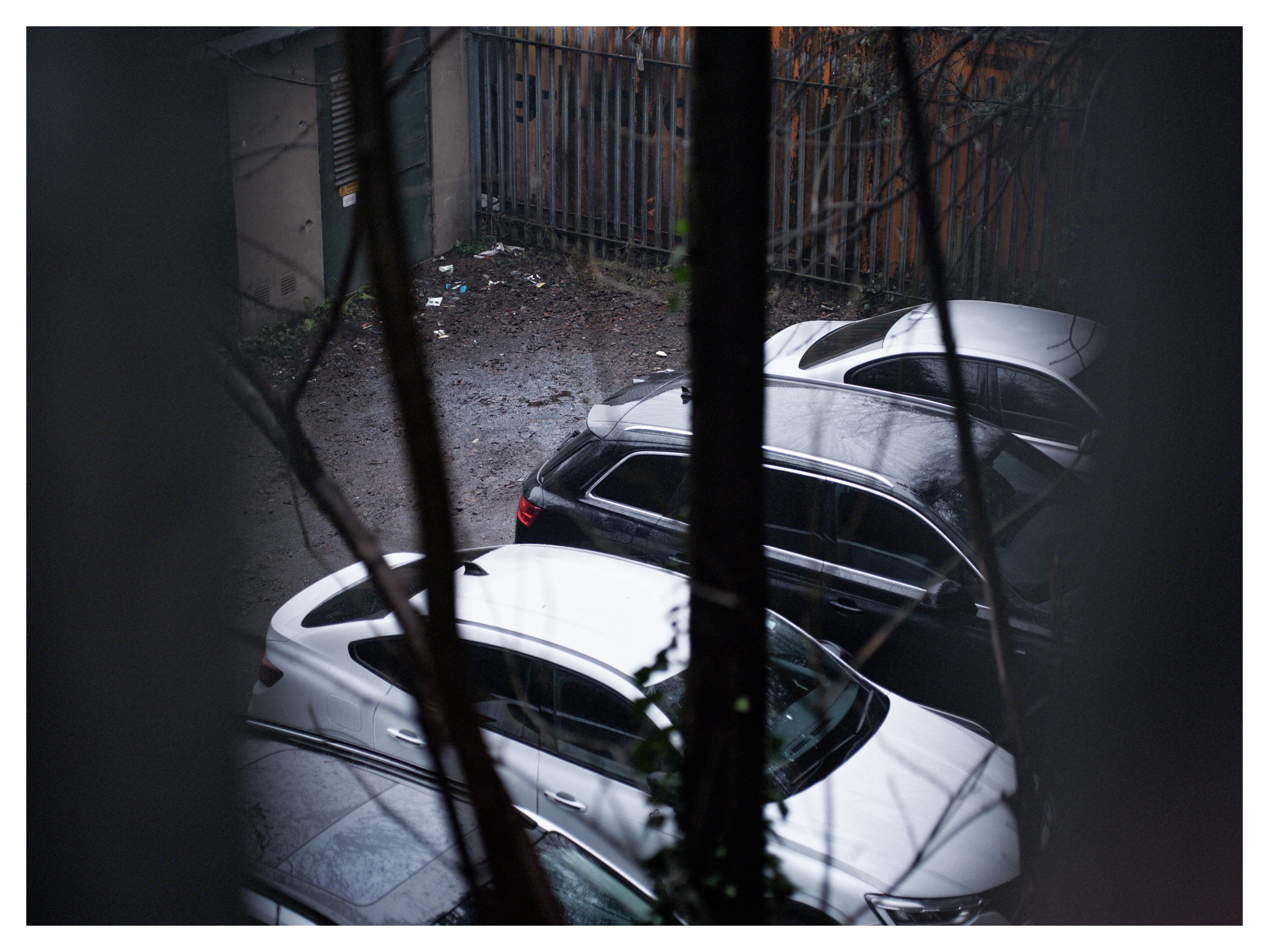 These images came together gradually, with no rush or set goal. They grew out of walking, lingering, and letting spaces stay unresolved. What you see are not events, but traces left behind—signs of use, habitation, and intention that remain after meaning has faded. Fences, windows, barrels, cars, water, and walls each act as thresholds instead of main subjects, keeping the viewer in a state of suspension.